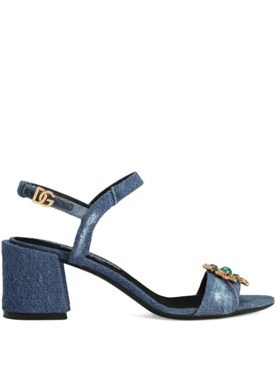 60mm Jeweled Denim Block-heel Sandals In Blue