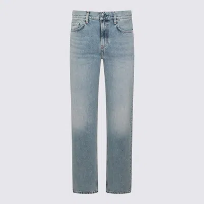 Faded Blue Washed Raw Denim Low-rise Round Jeans