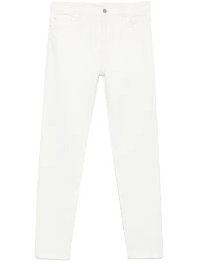 Low-rise Circle Eyelet Wide-leg Ankle Denim Pants In Blanc