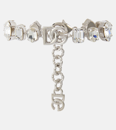 Dg Crystal-embellished Bracelet In Argento/palladio
