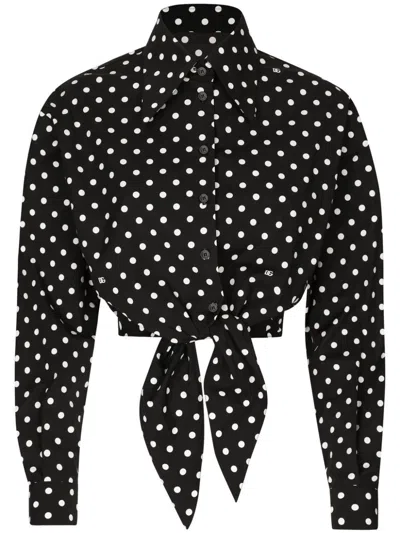 Poplin Dots Front Knot Shirt In White,black