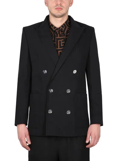 Double Breasted Blazer Floral Pattern Tailoring In Blue
