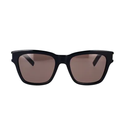 Saint Laurent Gold-tone Logo Detail Open Cuff Bracelet In Black