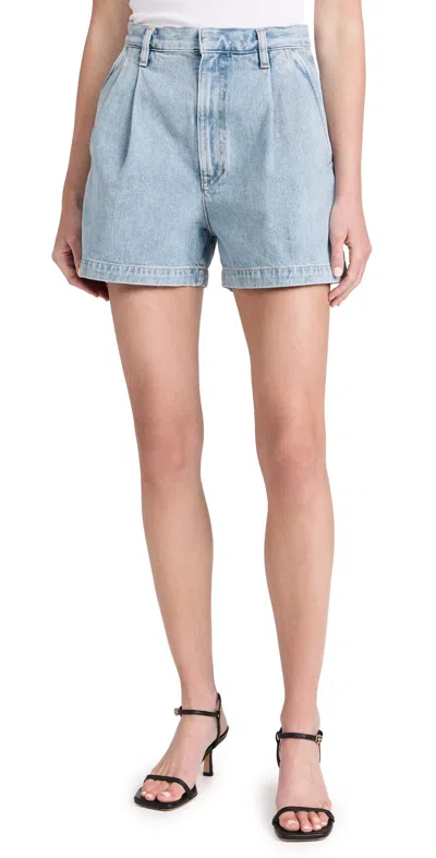 Ellis Pleated Organic Cotton Denim Shorts In Milkshake