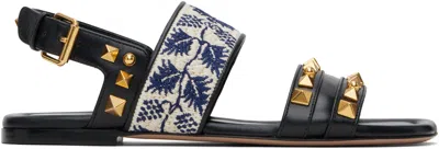 County Rockstud Floral-embroidered Leather Sandals In Brown