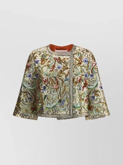 Sequin Embroidered Floral Cropped Jacket In Multi