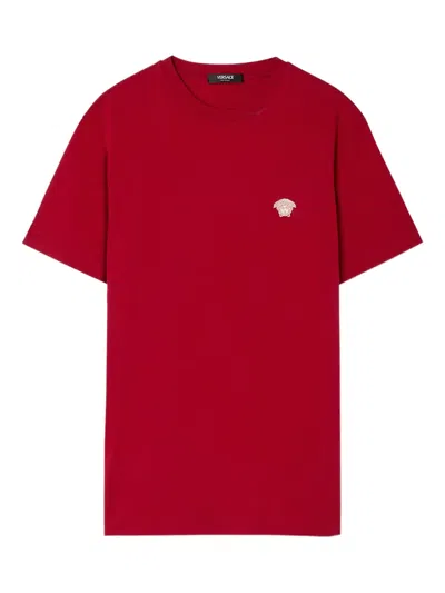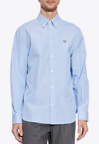 Medusa Embroidered Short-sleeved Polo Shirt In Blue