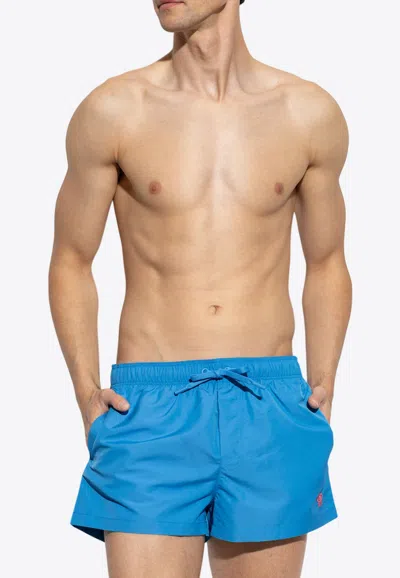 Blue Embroidered Medusa Swim Shorts In 1vd60-95 Pastel Blue