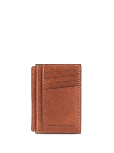 BRUNELLO CUCINELLI LOGO STAMP CARDHOLDER - 棕色