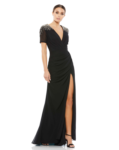 Sequined Embellished Shoulder Evening Gown In Black
