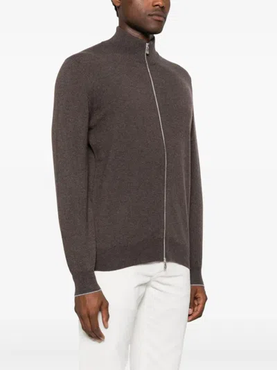 Full Zip Cashmere Cardigan In Brown
