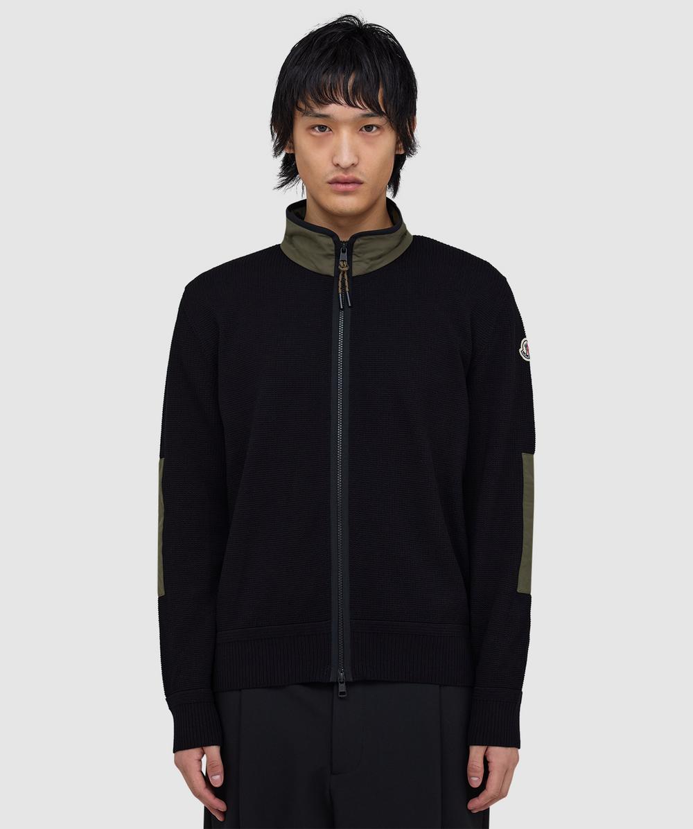 Contrast Full Zip Knitted Jacket In Black
