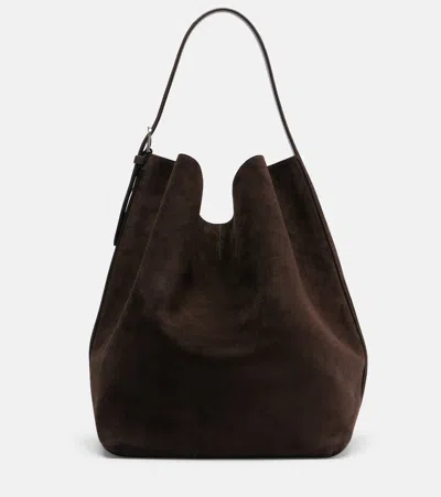 Lounge Large Leather-trimmed Suede Tote In Brown