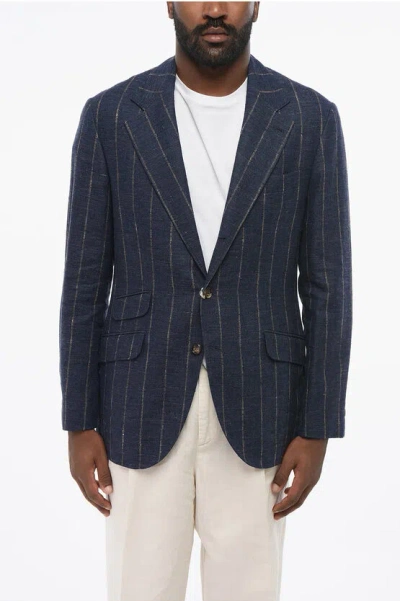 Half-lined Linen Blend Blazer With Pinstripes In Blue