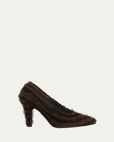 Prudens Fuzzy Fabric Pumps In Lqb Laquer Brown