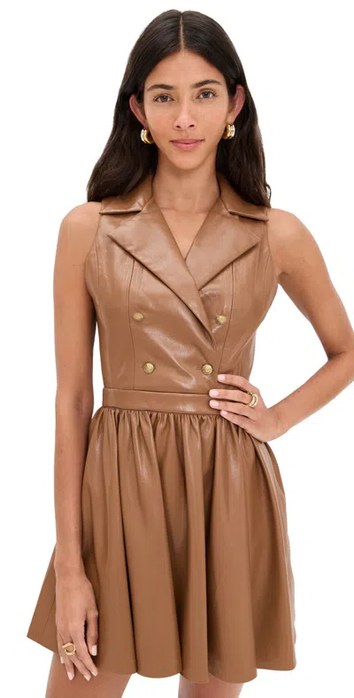 Emmy Faux Leather Flared Mini Dress Camel In Brown