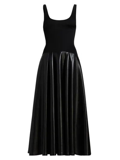 Women's Adley Faux-leather Drop-waist Flared Maxi Dress In Black