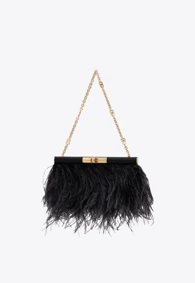 Medium Marlene Ostrich-feather Shoulder Bag In Black