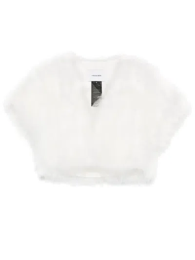 Cropped Feather-trimmed Knitted Flared Pants In Black