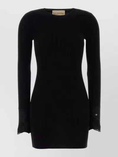 Cashmere Dress Featuring Lace Cuffs Ribbed Texture In Black
