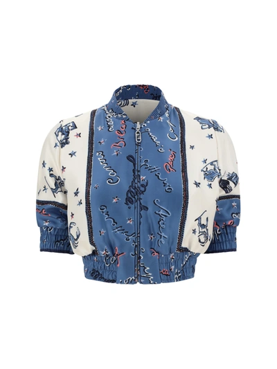 Ff Motif Long Sleeve Wool Jacket In Blue