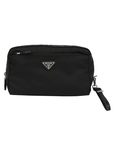 PRADA BLACK LOGO LETTERING LEATHER BEAUTY CASE - 黑色