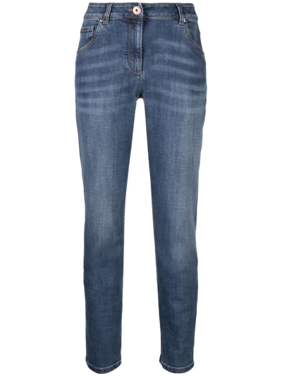Distressed-finish Denim Jeans In Blue
