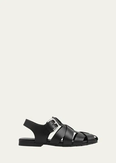 Capri Leather Fisherman Sandals In Black