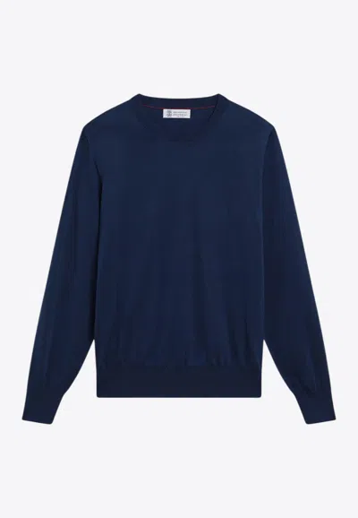 Ribbed Wool Crew Neck Long Sleeve Sweater In Black