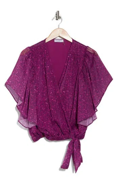 Kitty Flutter Sleeve Crop Top In Purple