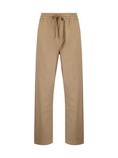 Straight Leg Trousers Elastic Waistband In Brown