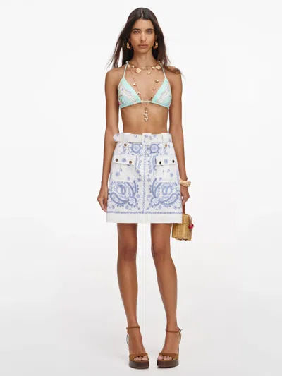 Classic Five-pocket Mini Skirt With Concealed Fly In Blue