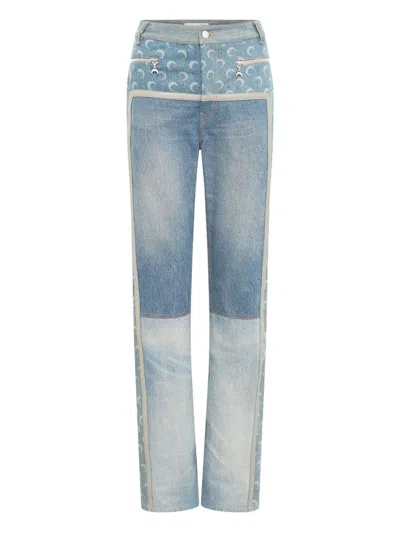 月亮印花拉链牛仔裤