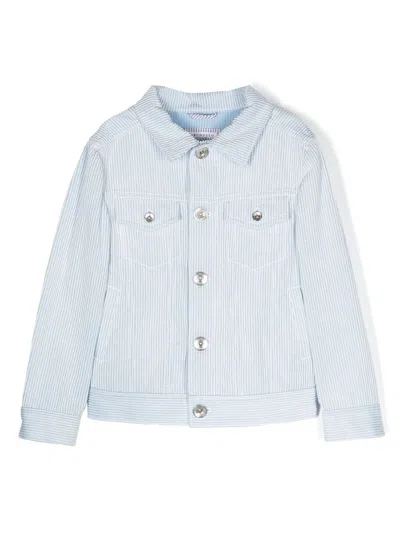 Denim Jacket Long Sleeves Front Pockets In Blue
