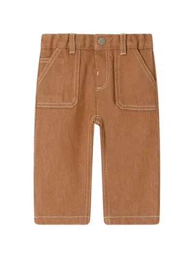 Kids Beige & Orange Gaspar Leggings In Zig Zag Orange