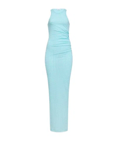 Gingham Knit Maxi Dress In Blue