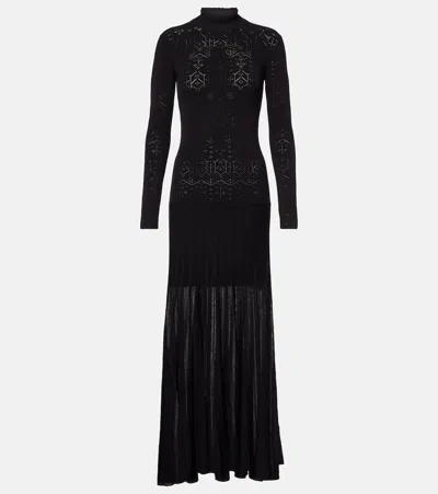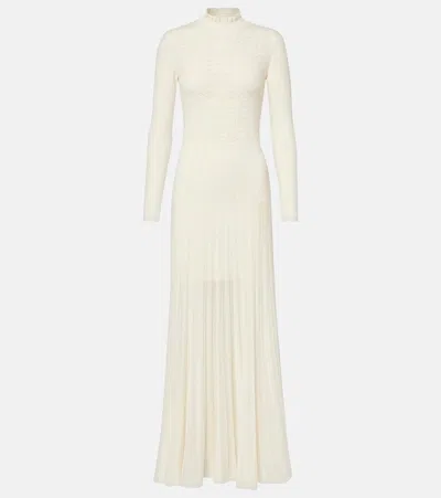 Gisole Paneled Pointelle-knit Turtleneck Maxi Dress In Weiss