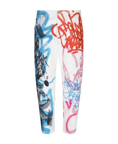 Spray-paint Graffiti Print Loose Jeans In Multicolour