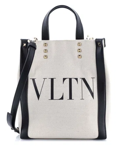 Valentino Beige Canvas Grande Plage Vltn Tote Mini (authentic Pre-loved) In Neutral