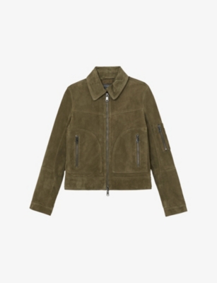 Womens Tate Long-sleeve Suede Jacket Khaki Green In Gray
