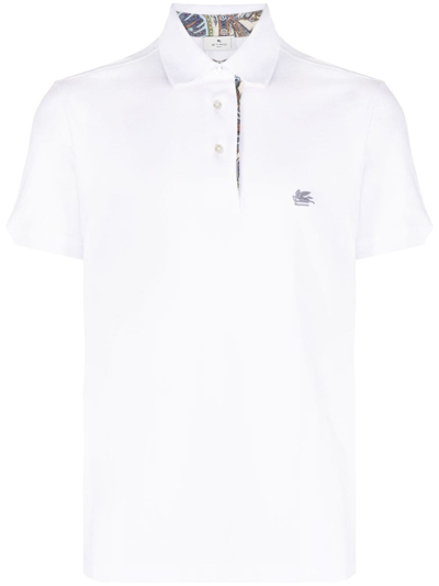 Embroidered Pegaso Pique Polo T-shirt In White