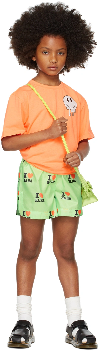 Kids Green 'i Love Haha' Shorts In I Love Haha Fluo Gre