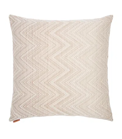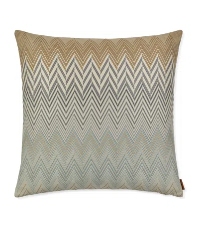 Blue Jarris Zigzag Cotton Cushion In Grey