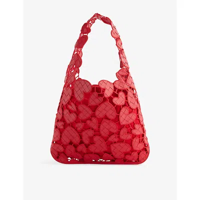 Womens Heart Cut-out Leather Tote Bag In Red