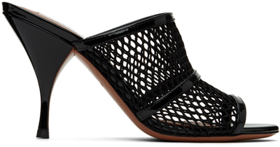 Black Fishnet Heeled Mule Sandals In 999 Black