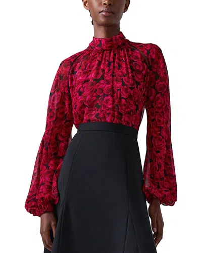 Floral Mock Neck Gathered Top In Herrera Red Mul