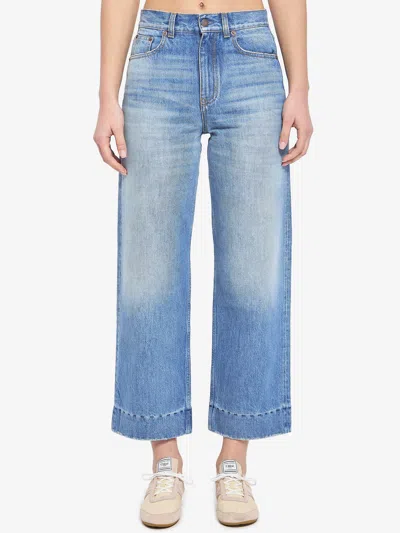 Wide-leg Denim Jeans With High Waist And Five-pocket Design In Blue