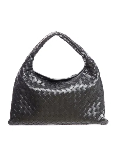 Women Hop Leather Shoulder Bag With Intrecciato Motif In Black