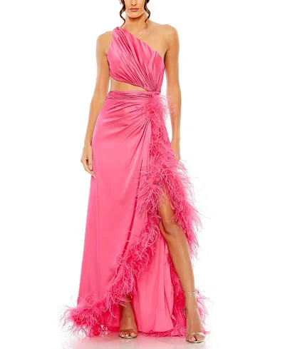 One Shoulder Key Hold Detail With Feather Lining Dress In Hot Pink