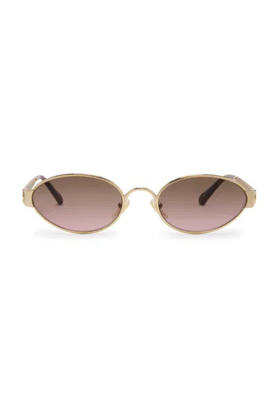 Holly Oval Gradient Lens Metal Sunglasses In Brown